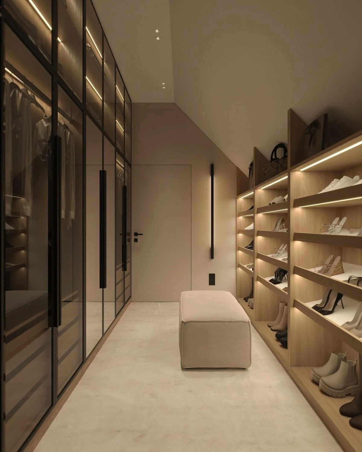 Etichettare i contenitori, usare palette cromatiche simili e illuminare bene l’armadio (con luci a sensore o strisce LED) aumenta la chiarezza visiva e rende tutto più accessibile.