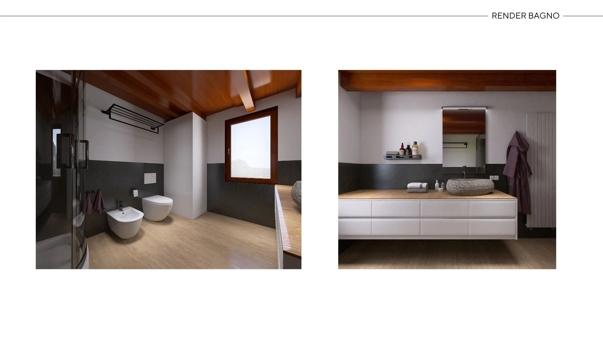 Il bagno è stato riorganizzato con un mobile su misura che ingloba lavatrice e caldaia, risolvendo in modo pratico e discreto le esigenze funzionali. Infine, abbiamo valorizzato le travi a vista e inserito dettagli in legno, per rendere l’ambiente più caldo e armonioso, esattamente come Marco desiderava.