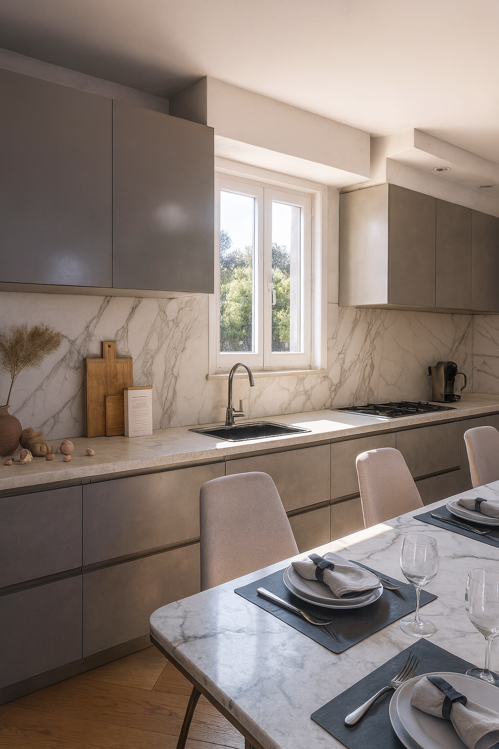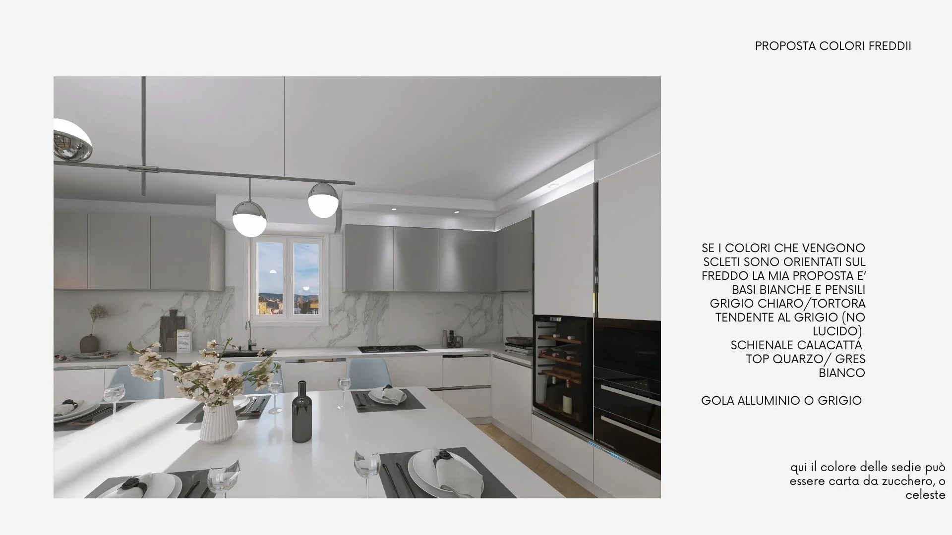 Il progetto ha preso forma a partire dalla definizione di una palette colori che unisse toni caldi e freddi, permettendo così di creare ambienti equilibrati, eleganti e funzionali. Successivamente, ho realizzato i render fotorealistici delle stanze oggetto dell’intervento, così da restituire a Marinella una visione concreta e dettagliata del risultato finale.