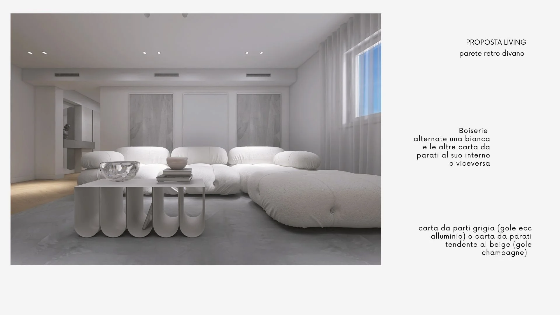 Marinella si è rivolta a me attraverso l’architetto che stava seguendo i lavori di ristrutturazione della sua abitazione. Si trovava in difficoltà: non riusciva a immaginare come arredare i suoi nuovi spazi e le proposte ricevute dal precedente interior designer non la rappresentavano, né rispecchiavano il suo gusto personale.