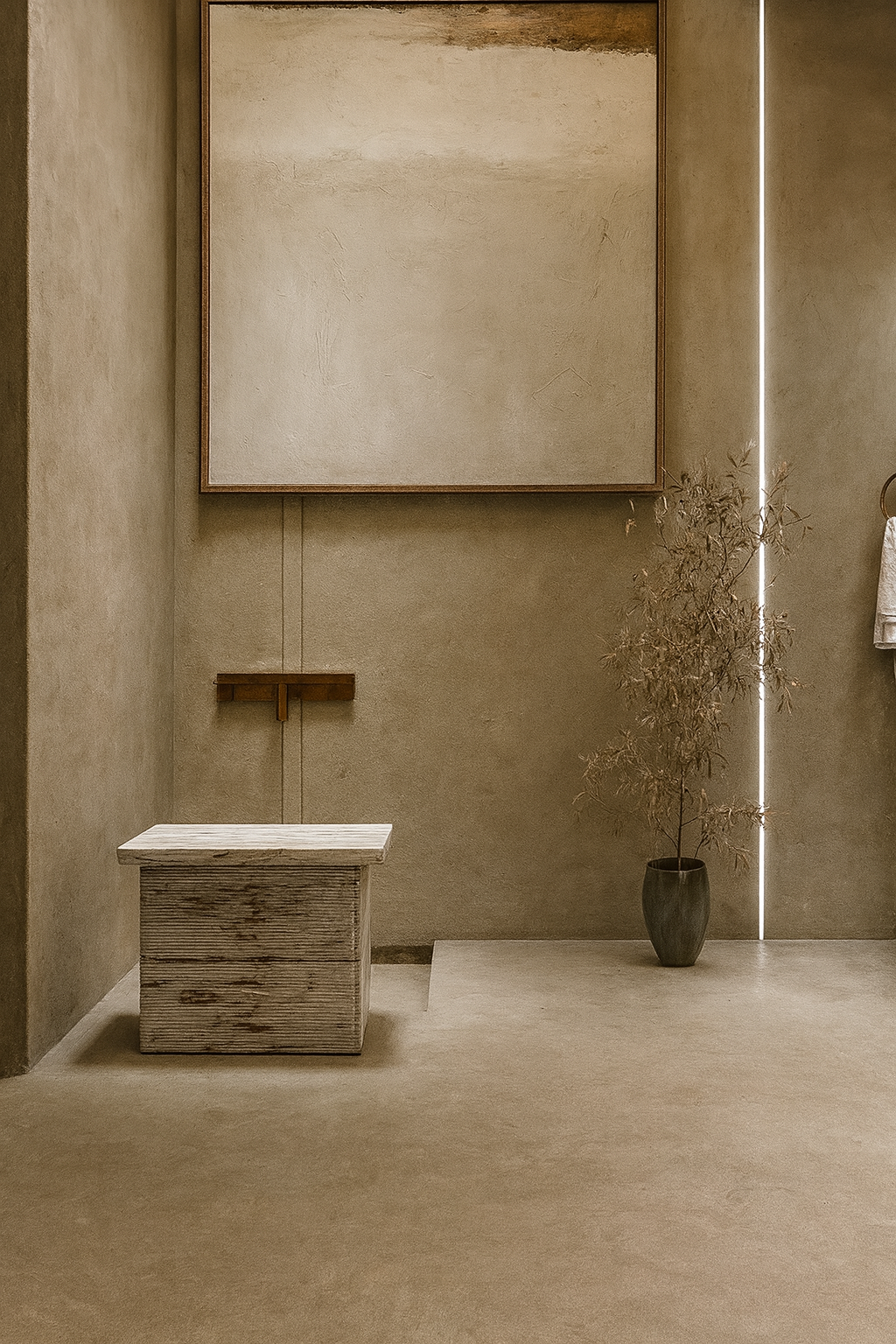 Effetto cemento sulle pareti, per un tocco contemporaneo e materico.