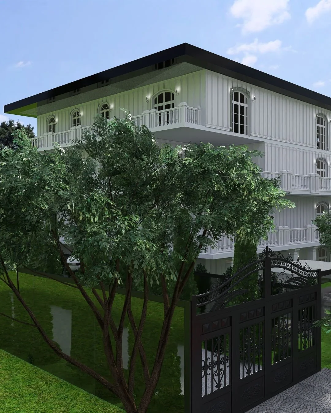 Nel render realizzato per l’agenzia 11mq di Cesenatico, in collaborazione con l’architetto Medardo Altini, è emerso un immobile di prestigio situato in una zona residenziale di grande valore. Il progetto, sviluppato a partire dalla planimetria e dalle esigenze del target, ha dato vita a una residenza elegante e raffinata che sarà suddivisa in tre unità abitative indipendenti, mantenendo però l’immagine coerente e armoniosa di un unico edificio di pregio.