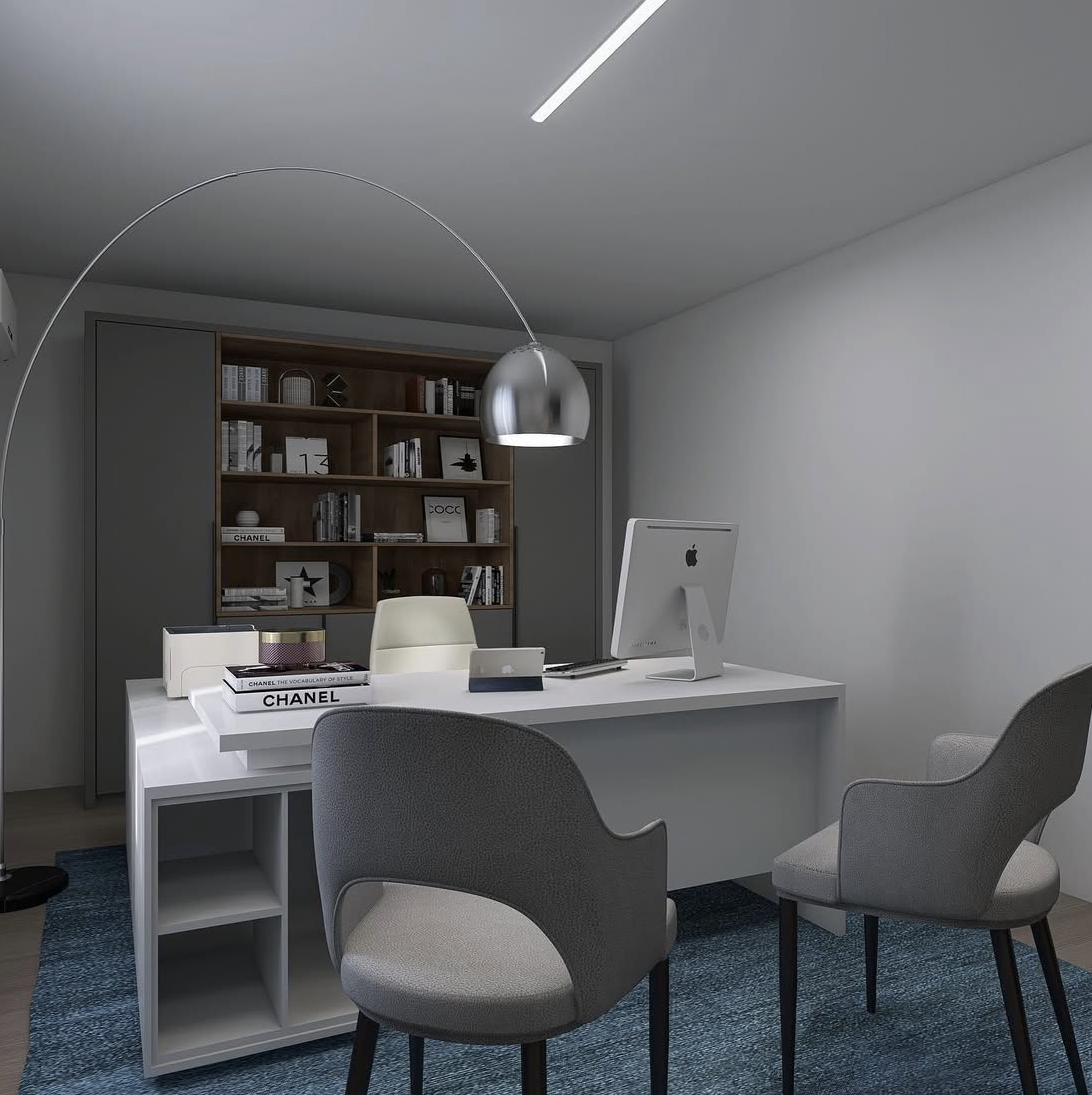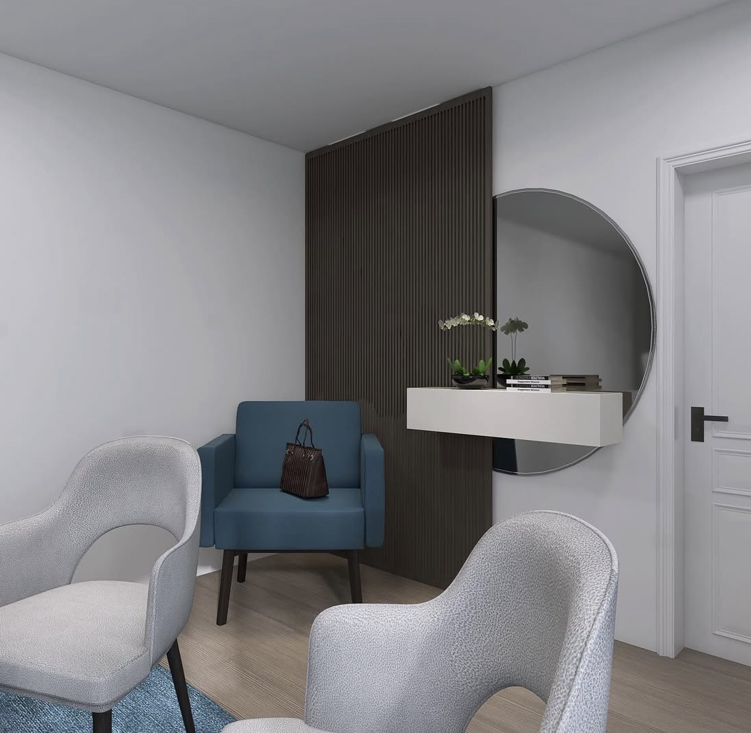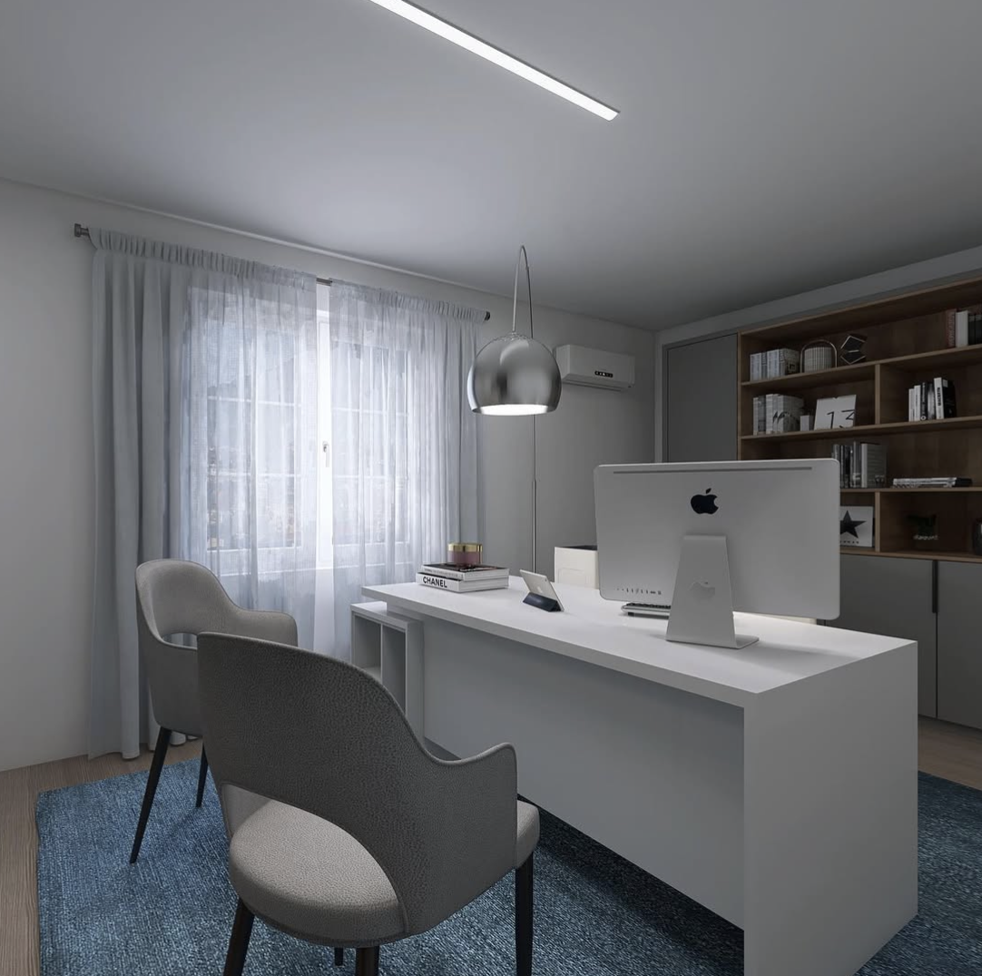 Partendo dalla planimetria fornita dalla cliente, ho sviluppato il layout degli spazi, studiando una distribuzione funzionale che rispondesse alle esigenze lavorative e di accoglienza. Successivamente ho definito il budget di progetto e individuato lo stile più adatto, capace di trasmettere professionalità e allo stesso tempo un senso di comfort e cura del dettaglio.