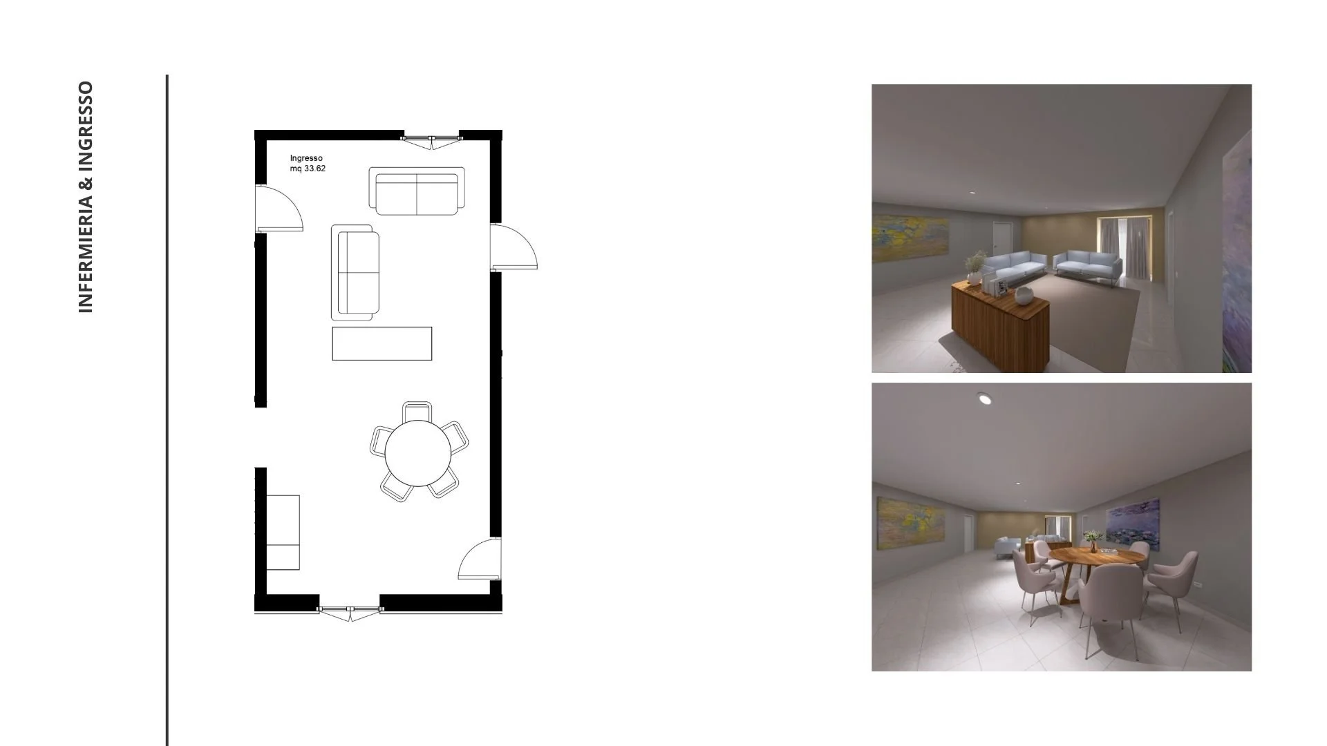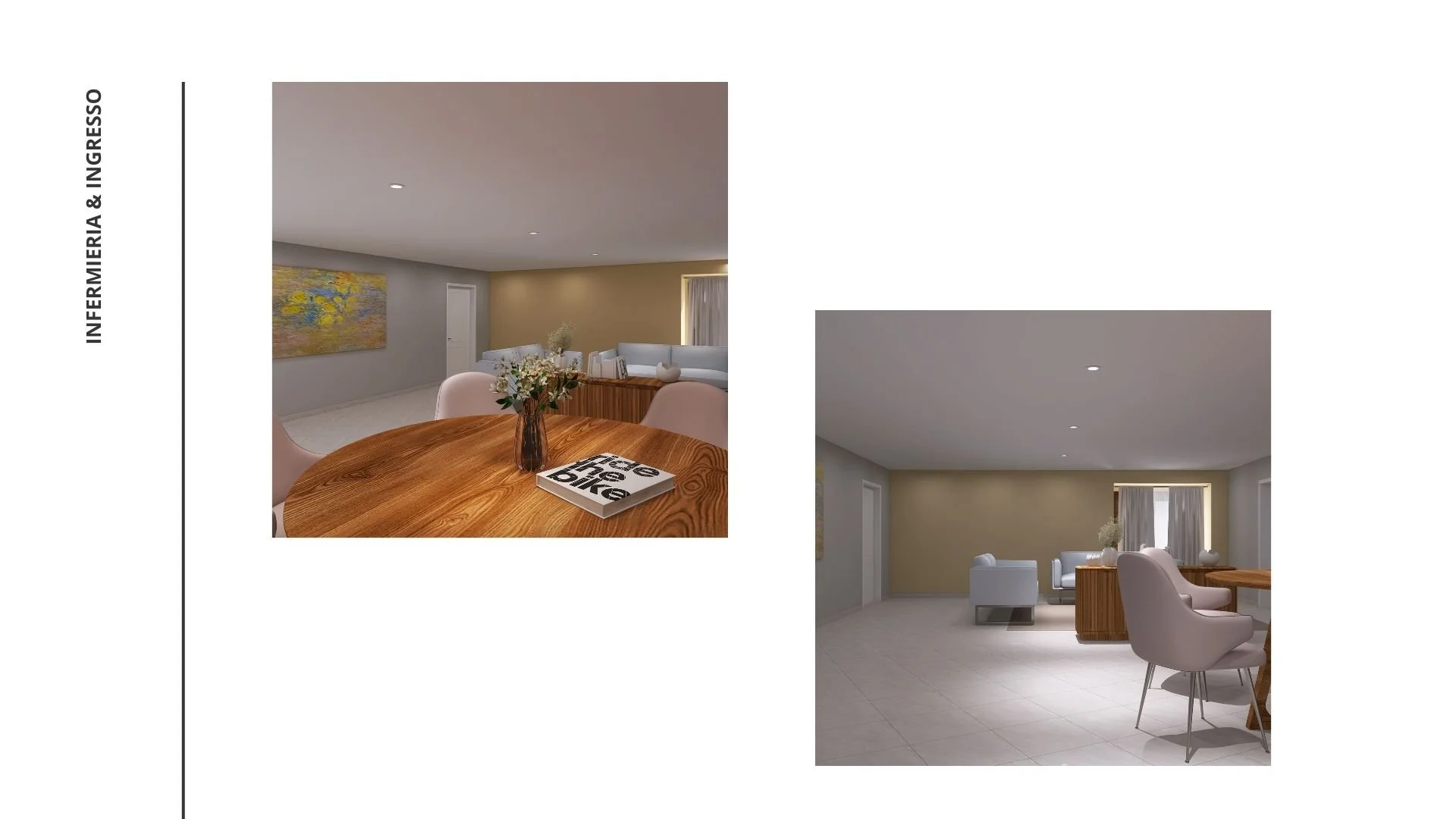 Il primo ha riguardato una clinica medica a Senigallia: mi sono occupata di effettuare il sopralluogo e il rilievo, di confrontarmi con i clienti per comprendere appieno il loro stile e le loro esigenze, e di valutare quali elementi mantenere e quali invece rinnovare all’interno del contesto. Successivamente ho realizzato i render fotorealistici e una presentazione di progetto, utile per comunicare in maniera chiara e immediata le potenzialità dello spazio e la direzione progettuale intrapresa.
